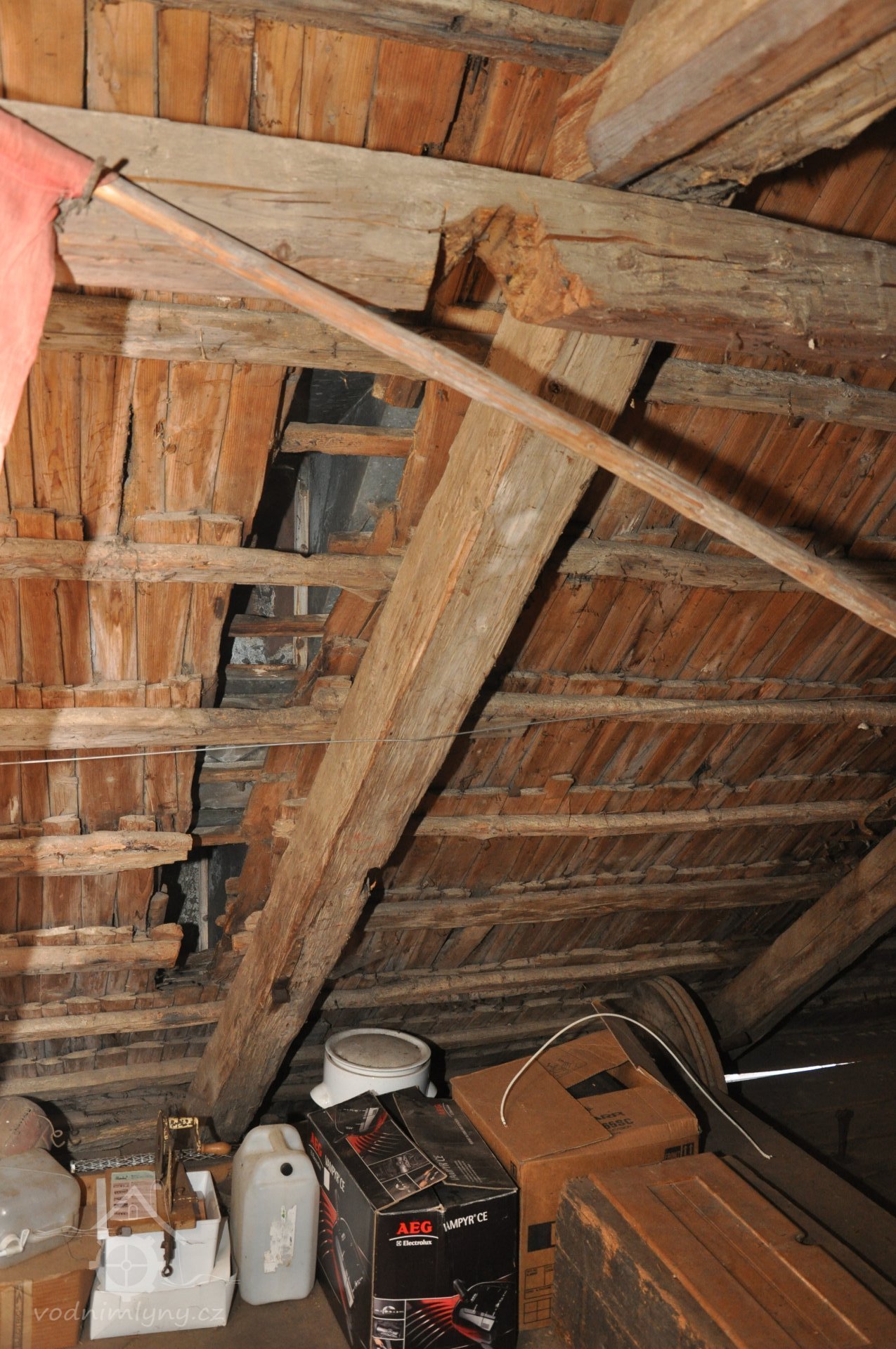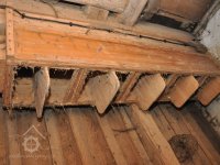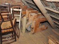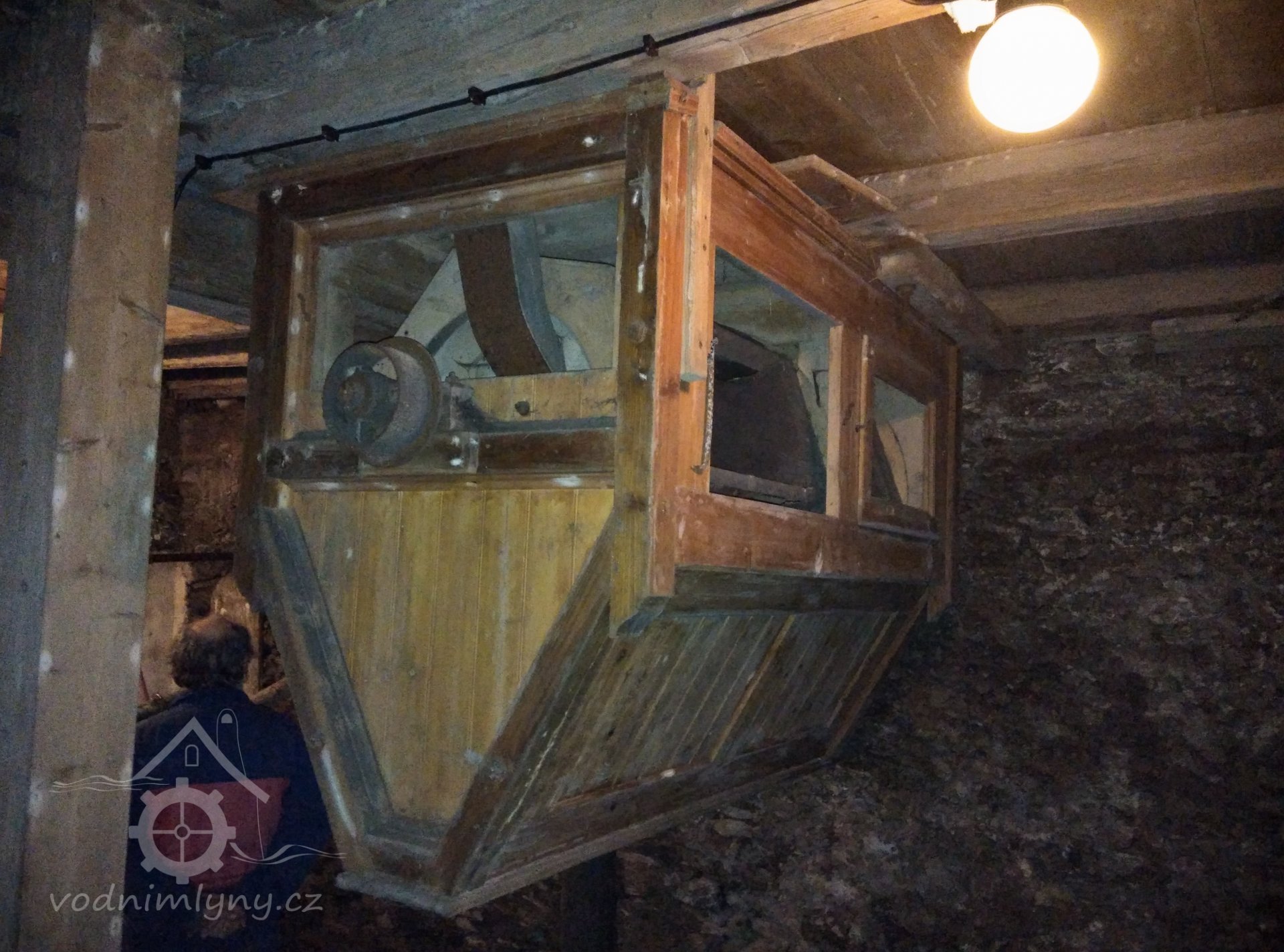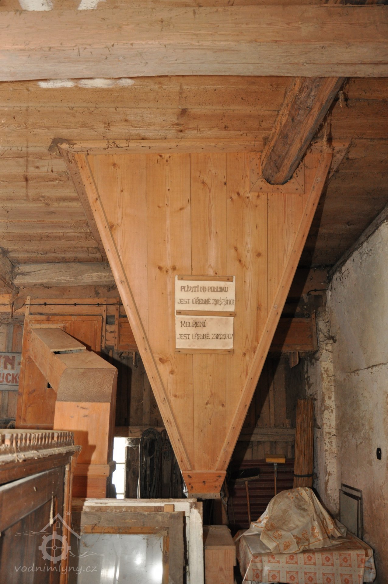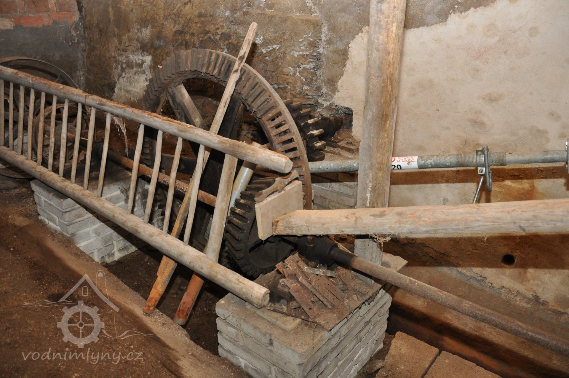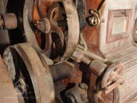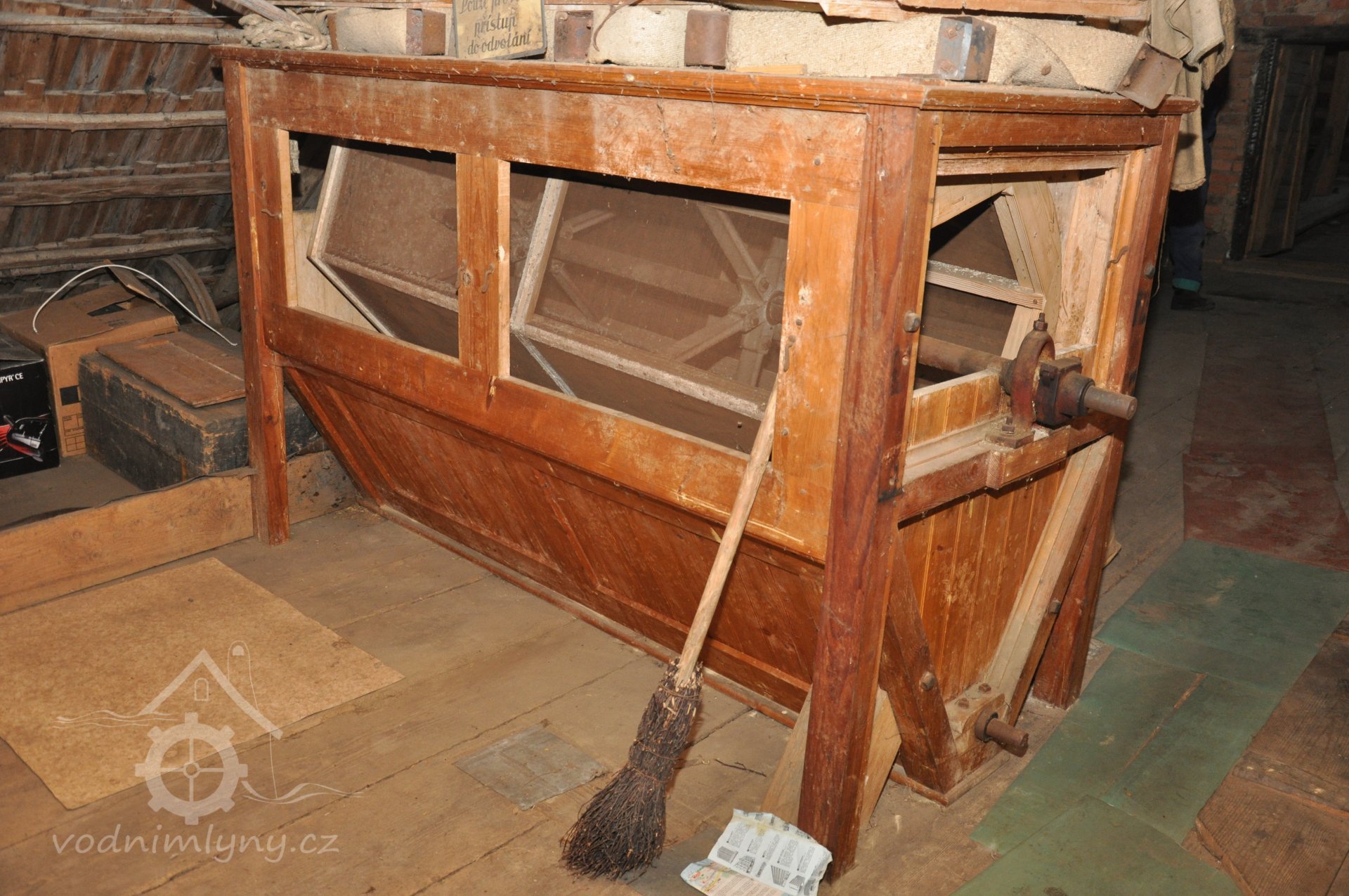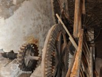 - Na transmisi v podstřeší je dřevěná kladka, která za pomoci lana jdoucího skrz střešní otvory (vzácně dochováno) roztáčela ještě malou transmisi ve stodole pohánějící mlátičku a další zemědělské stroje.