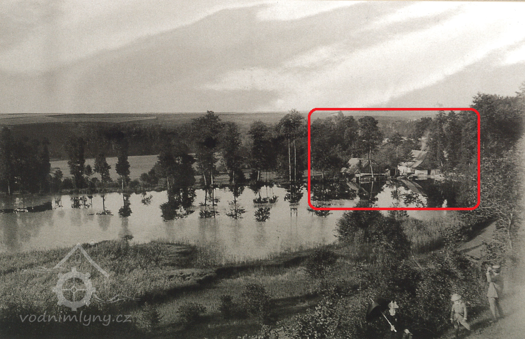 Poč. 20 stol má mlýn 1 kolo na svrchní vodu, průměr 3, 62 m, šířku 0, 85 m a hloubku korečků 0, 26 m, 14 ot/min, obvodová rychlost kola 2, 64 a průtok vody 205 l/s.