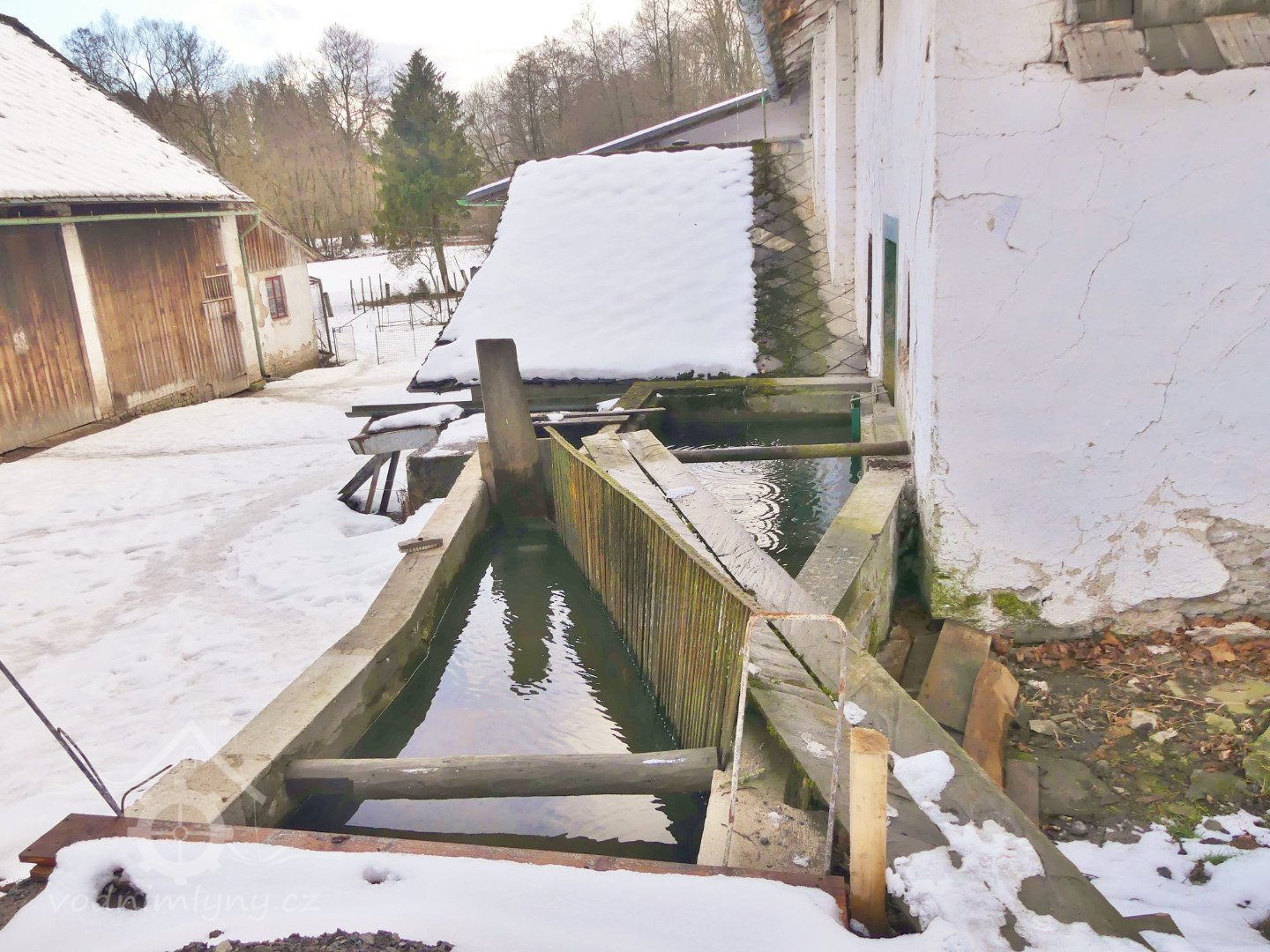 Cesta vody k mlýnu je velmi krátká, rybník je hned nad mlýnem, odtud vedl krátký náhon hrází rybníka na vantroky a kolo, dnes ale do betonové nádržky a do kašny pro turbínu. Pod zadním průčelím domu je klenutý odtokový kanál.