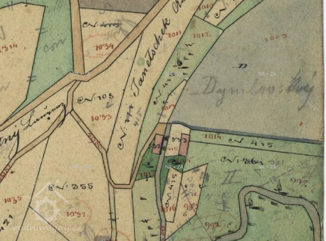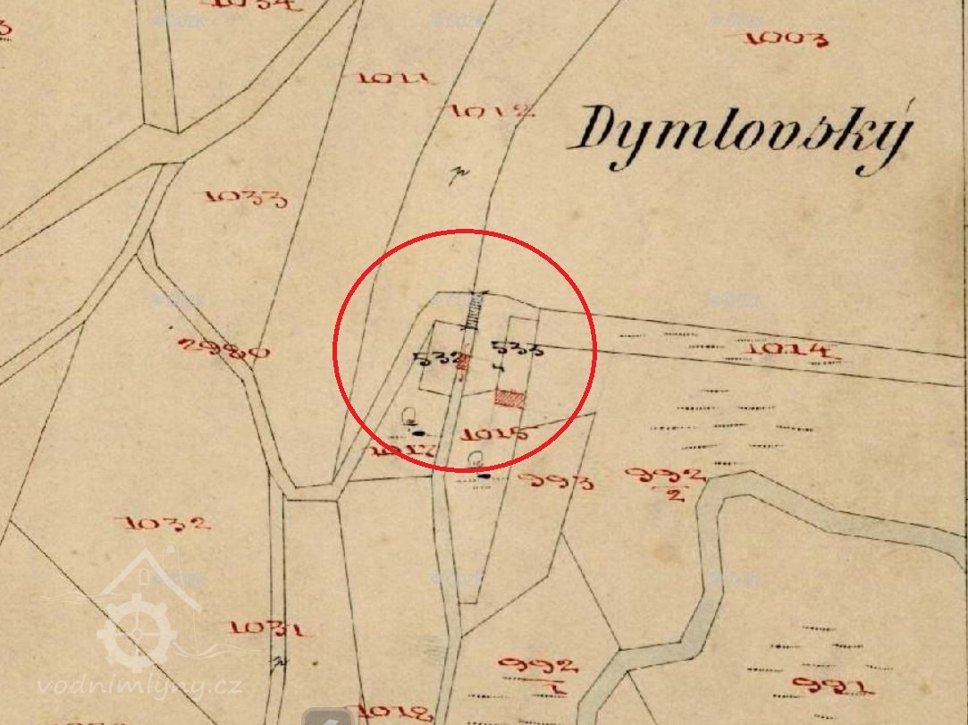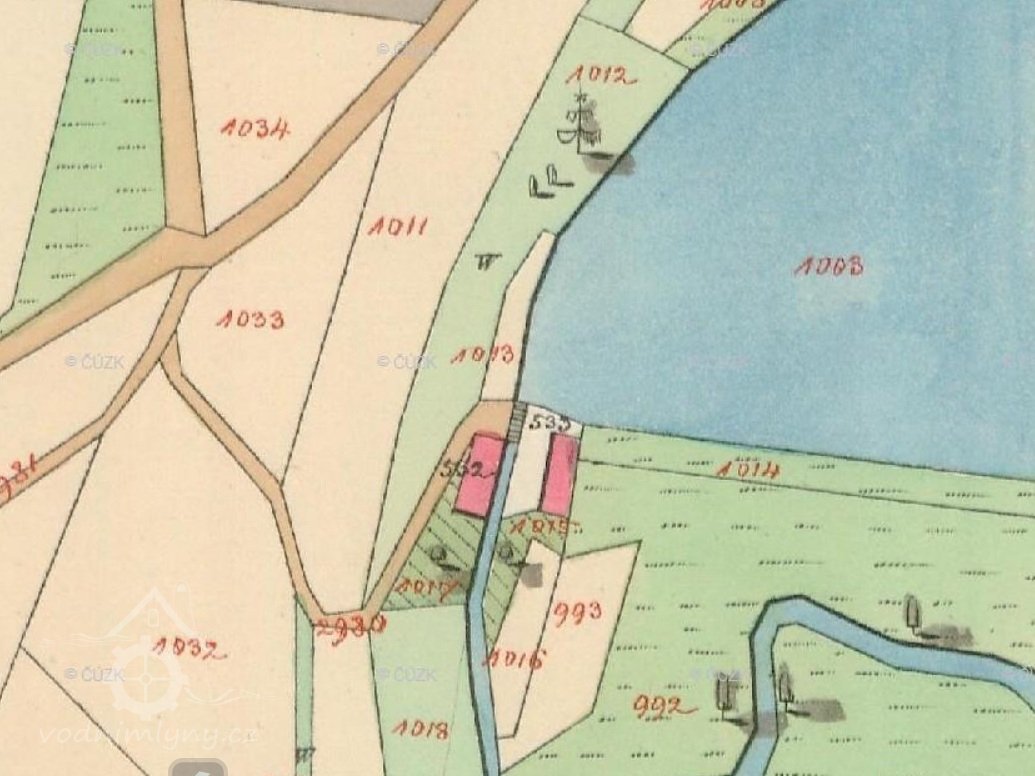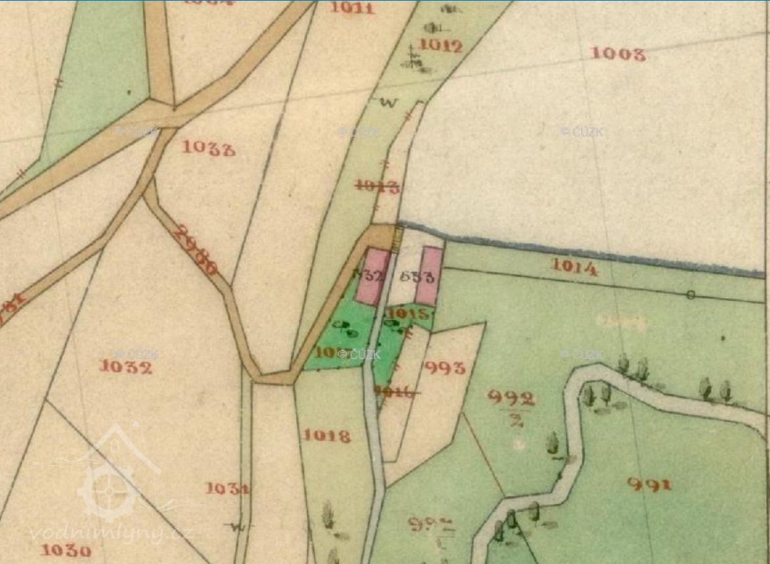 PopisMapa stabilního katastru zaznamenává dvě vodní kola.