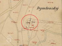 Mlýn, založený 1752, je součástí trojstranného dvora situovaného pod hrází Dymlovského rybníka. Mlýn přiléhá k příjezdové cestě, navazující obytná část domu je otočena do zahrady. Přes dvůr stojí stodola a do L (k příjezdové cestě) navazují chlévy, v patře se seníkem.