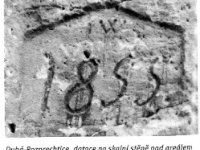 Letopočet 1528 na skále u tunelu (má to být nejstarší datace vodního díla u nás), 24.8.2011, © Vladimír Kraus, (Prvky na obrázku: náhon)