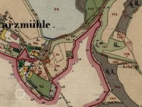 1714, 1757 přiznávací fase Tereziánského katastru: Černý mlýn s jedním kolem a pilou na nestálé vodě