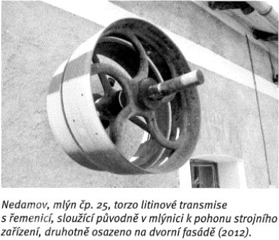Dochovány pouze vyřazené mlecí kameny a torza transmisí s litinovými řemenicemi.