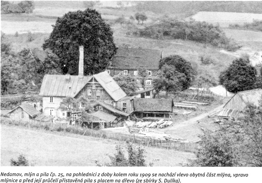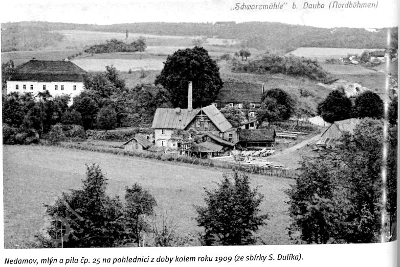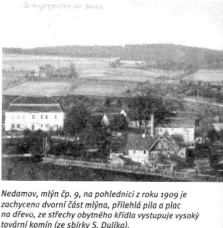 Stavení mlýna u Černého rybníka v osadě Nedamov, dnes slouží jako penzion.