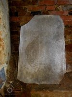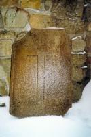 Na kameni je vyryt jetelový kříž. V dolní části je zbytek nápisu: