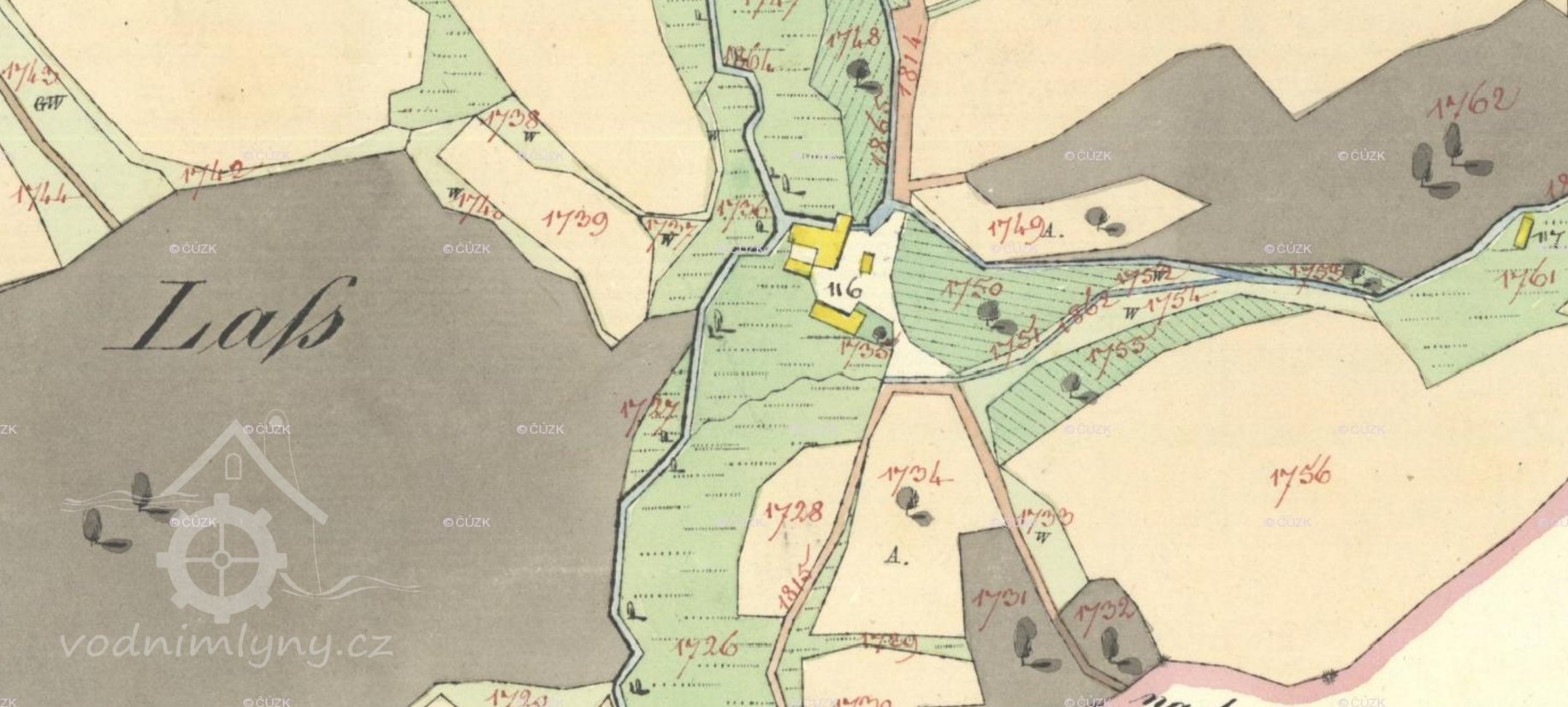 Mlýn přestavěn počátkem 20. století. Původně vodní kolo, nyní Francisova turbína (nefunkční). Zbylé vybavení mlýna se nedochovalo. Nejstarší známí obyvatelé Vlaštovicovi, poslední mlynář Hrbáček Josef (do r. 1948).