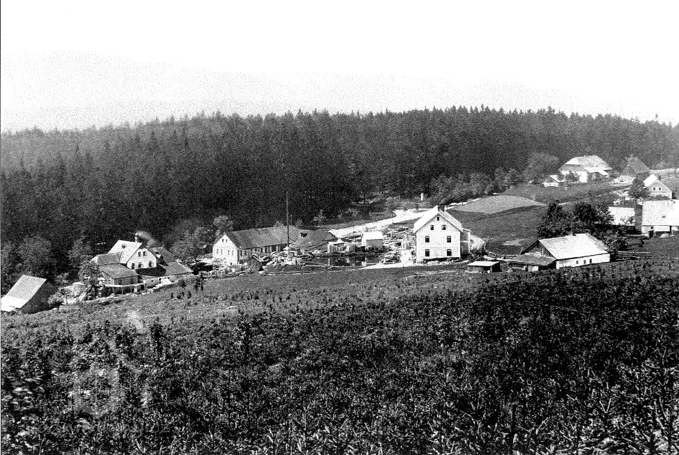 Původní mlýn, jehož majitelem byl mlynářský mistr Joseph Proschka (1870) (doloženo dle sčítání lidu, matriky) byl v roce 1922 přestavěn potomky na městkou vilu, které se říkalo Mackova vila. Mackovi v Caparticích před válkou vybudovali rozsáhlou dřevo-výrobu. I objekt vily je dnes v dezolátním stavu, v prostoru za vilou je pravděpodobně původní rybník. Taktéž vnučka zakladatele pily si vzpomíná na původní mlynářskou stavbu. Bohužel více informací je o nástupcích Proschky, kteří se mlynářskému řemeslu nevěnovali.