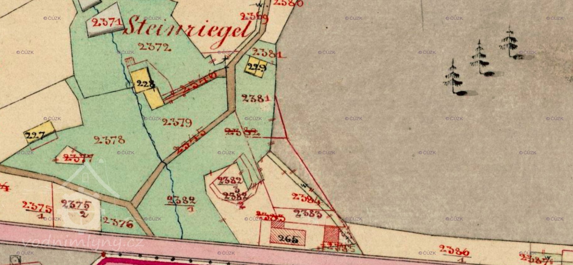 Popis1930: 1 kolo na svrchní vodu, hltnost 0,072 m3/s, spád 7,06 m, výkon 4,4 HP
