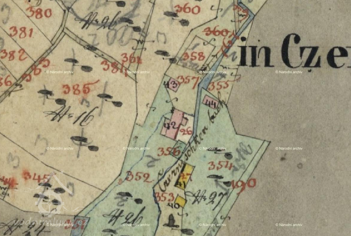 Mlýn byl prvním stavením po proudu a zároveň největším stavením v Černičkách.