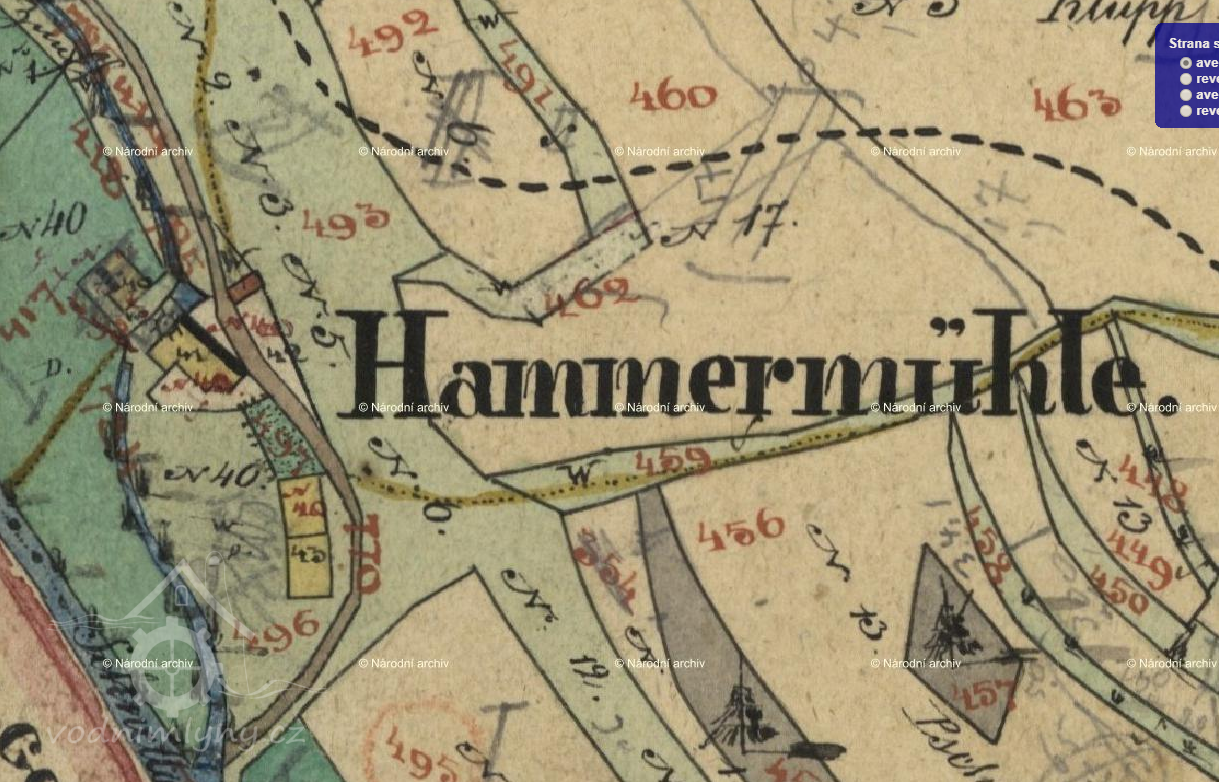 Popis1930: 1 kolo na svrchní vodu, hltnost 0,104 m3/s, spád 3,4 m, výkon 3 HP