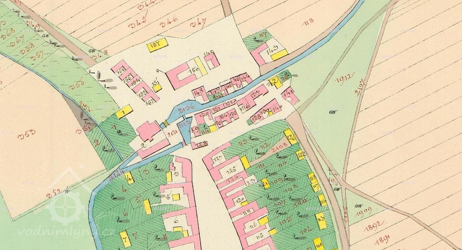 První záznam o velikosti mlýna máme z r. 1606. Tehdy měl tři moučná složení a jeden kašník (na mletí pohanky). Těsně po r. 1600 máme ve mlýně doloženého mlynáře Jana, v letech 1602-1609 Tomáše a v letech 1609-1621 Hawla Wymala. V letech 1591-1609 činil nájem 100 zl., 1611-1621 110 zl.