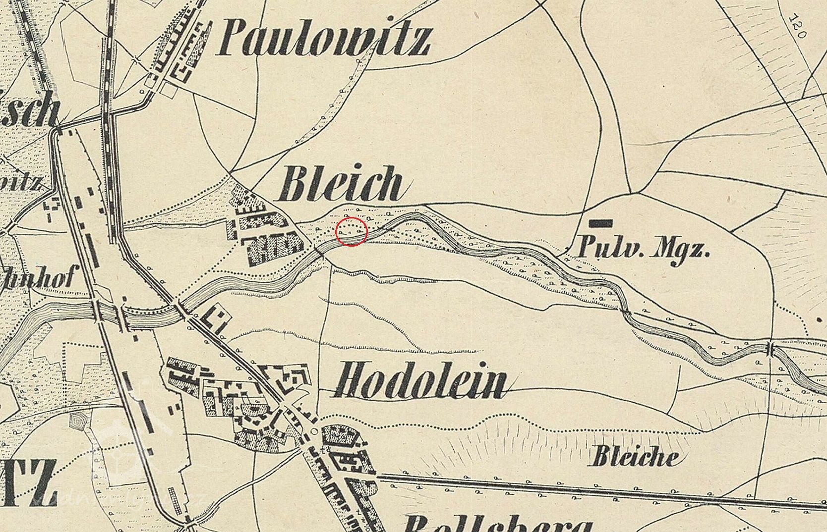 Mlýn se nacházel asi 2,5 km od středu města Olomouc