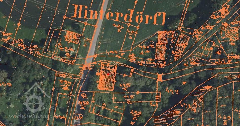 Mlýn byl umístěn na Prudniku, jižně od německého Paulowitz v kolonii Hinterdörfel. Na konci 19. století sestával ze starého dřevěného obydlí, mlýnského domu a stájí a měl tři chodby. Ve 20. století mlýn nejen mlel obilí, ale také dodával elektřinu do vesnice. Dnes nejsou žádné zbytky mlýna a mlýnský náhod je vyschlý.