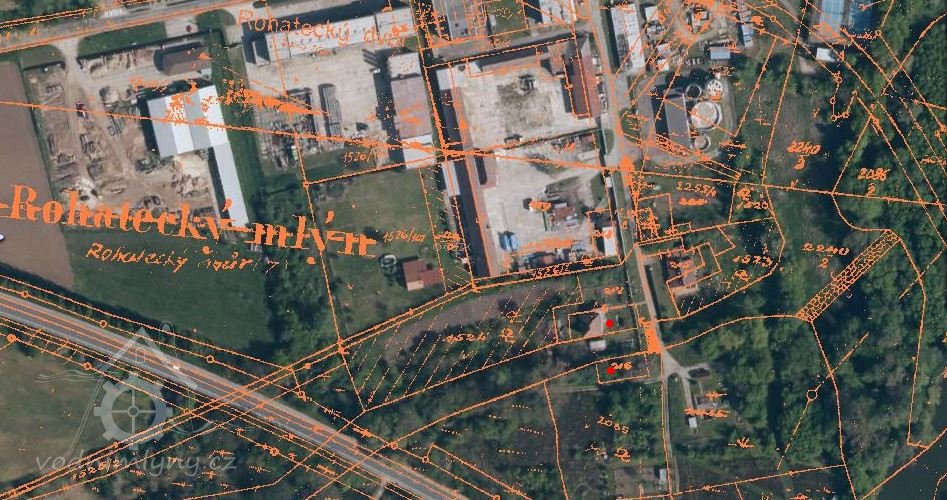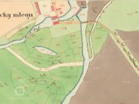 Mapová značka umístěná mezi oba bývalé mlýny. (RŠ)