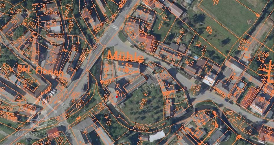 Mlýn se nachází téměř ve středu obce Mladeč