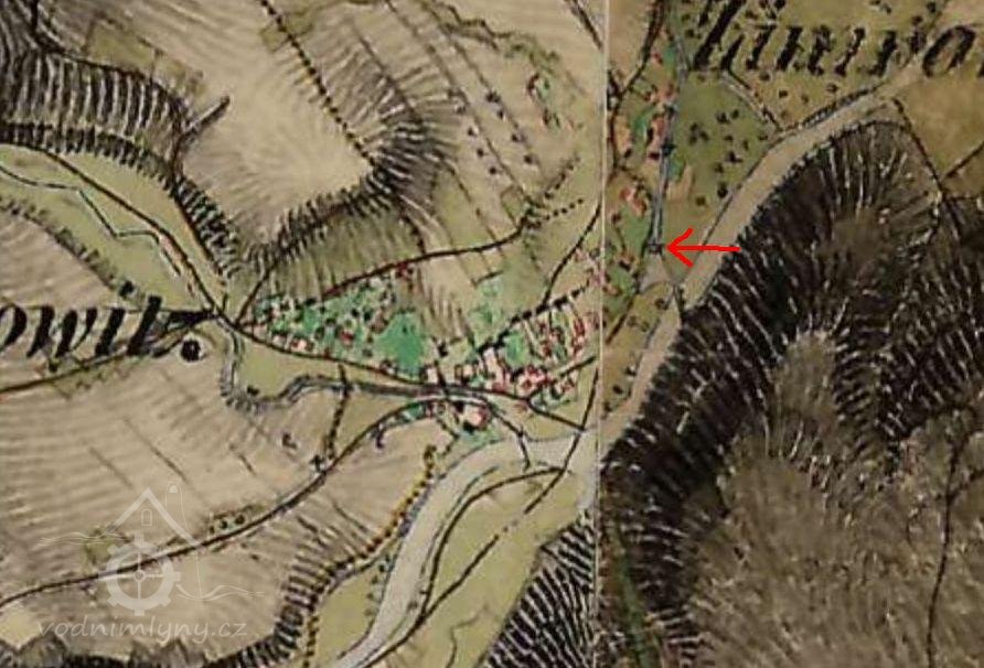 První zmínka o tomto mlýně pochází z urbáře hradeckého panství, který nechal roku 1574 sepsat Frydrych ml. Cetrys z Kynšperka, který držel tehdy hradecké panství v zástavě. Mlýn tehdy patřil žimrovickému fojtovi Matouši Vrtalovi.