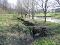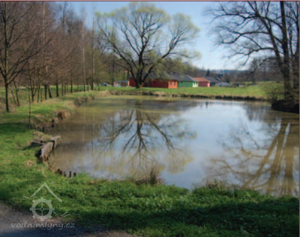 Areál stojí pod hrází rybníka na pč. 187. Ten stával při levém břehu Frýdeckého potoka. Není zobrazen náhon, jen nitkovitá strouha, kterou napájel právě rybník a ta se vlévala do potoka. Mezi mlýnem a rybníkem stával ještě jeden malý rybníček na pč. 169. Dodnes se zachovala menší západní polovina rybníka na pč. 187.
