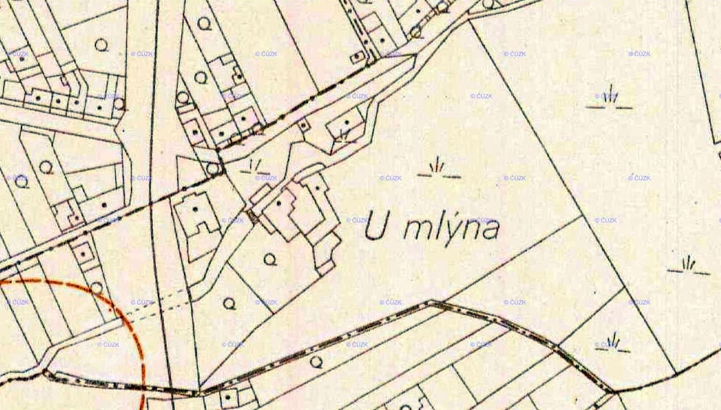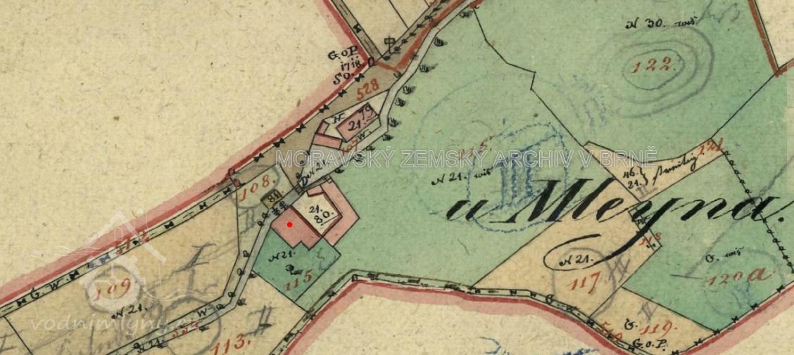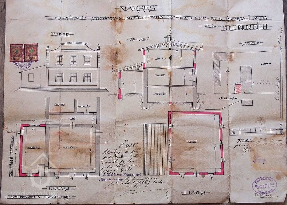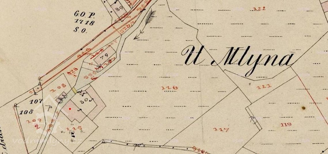 Zvláště pak bylo shledáno, že mlýnská struha nad Vašim mlýnem až za dům č. 20, patřící Anně Fialové jest úplně zamrzlé a že jste se pokoušeli v posledních dnes při nastalé oblevě prosekati led a uvolniti stavidlo u mlýna. U domu č. 20 byla mlýnská struha zamrzlá až po korunu hrázky a do úrovně pravého břehu, na kterém leží dvorek Anny Fialové.