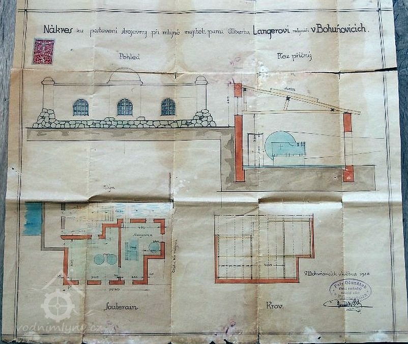 Popis1930: 1 kolo na svrchní vodu, hltnost 0,24 m3/s, spád 4,2 m, výkon 7,3 HP