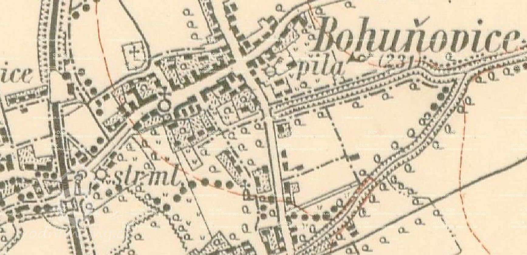 mlýn se nachází téměř ve středu obce Bohuňovice