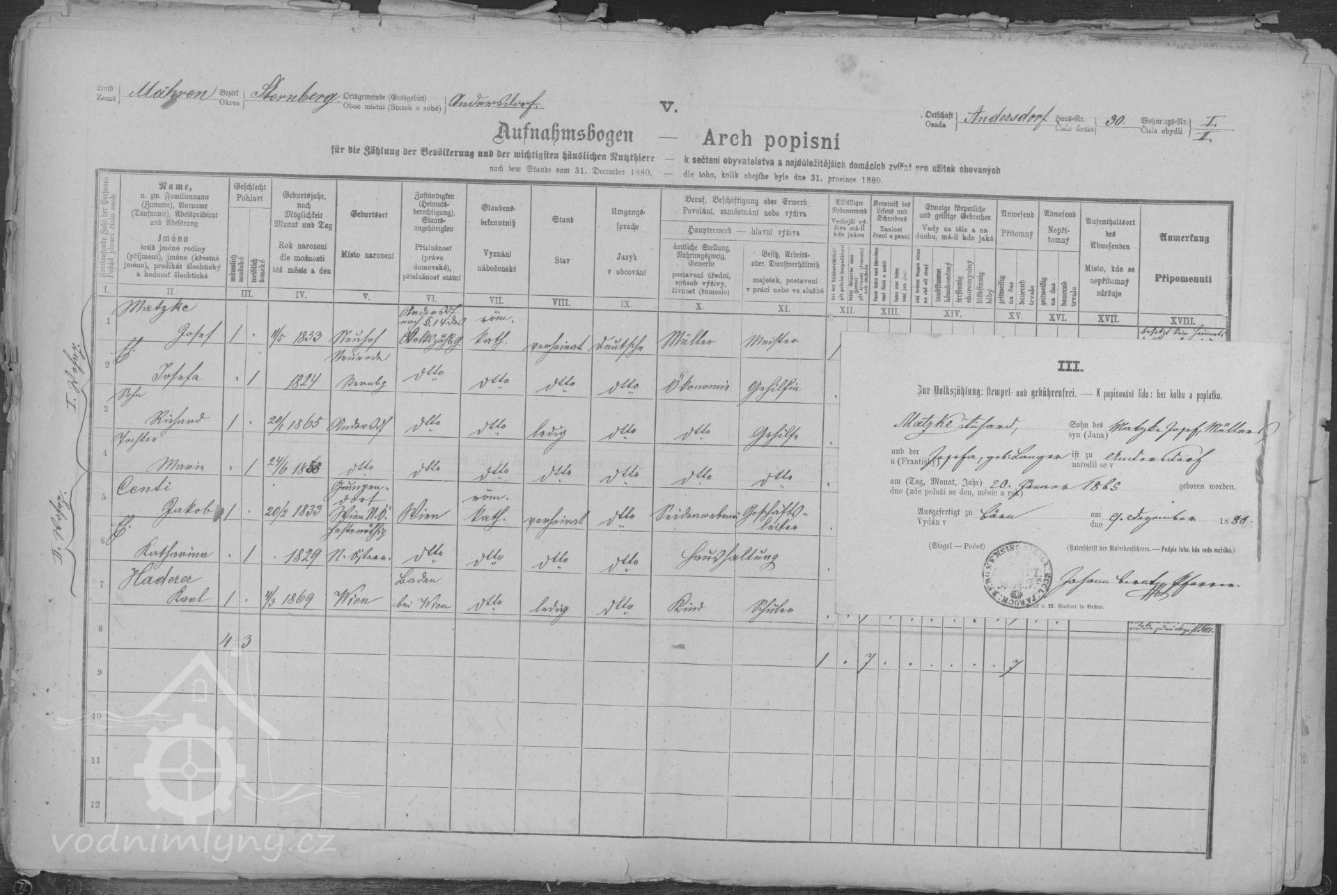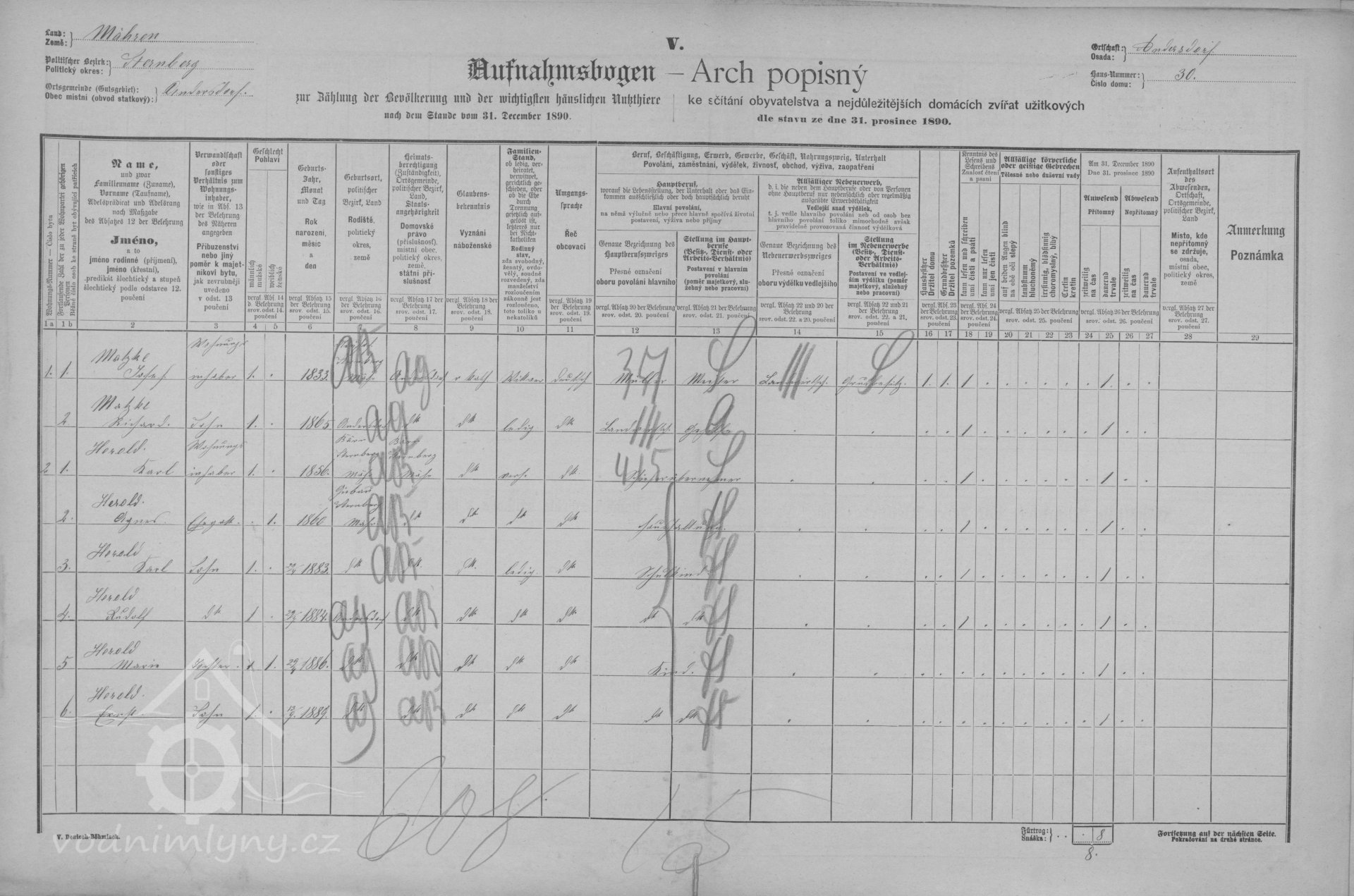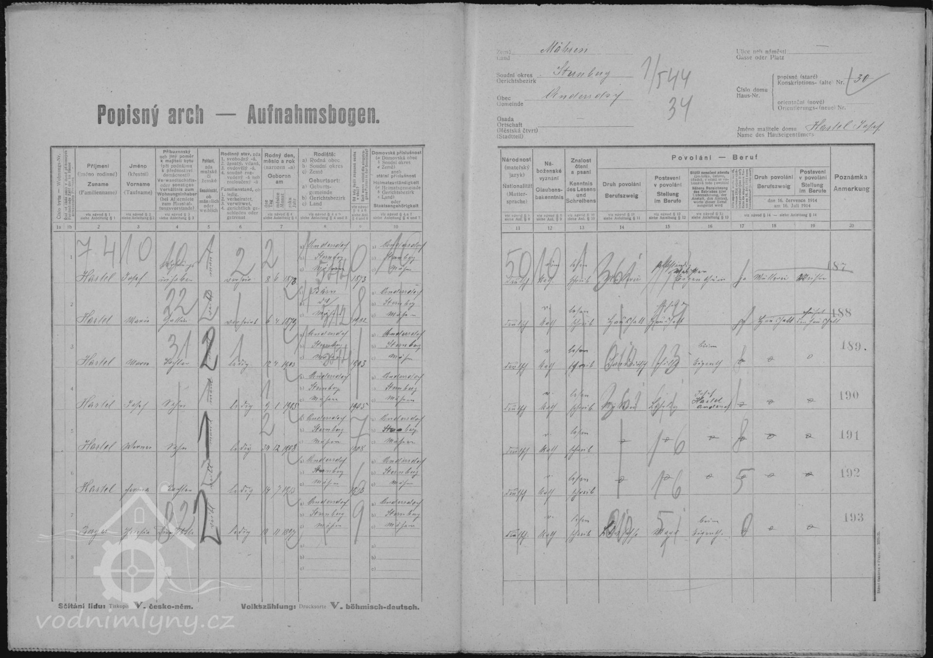 Další upřesněníArch popisný ke sčítání obyvatelstva