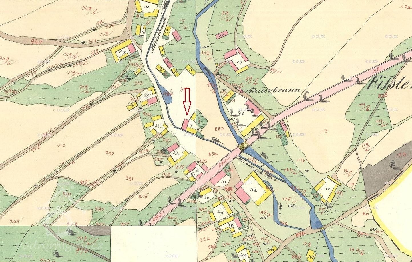 mlýn se nacházel ve středu obce Ondrášov
