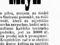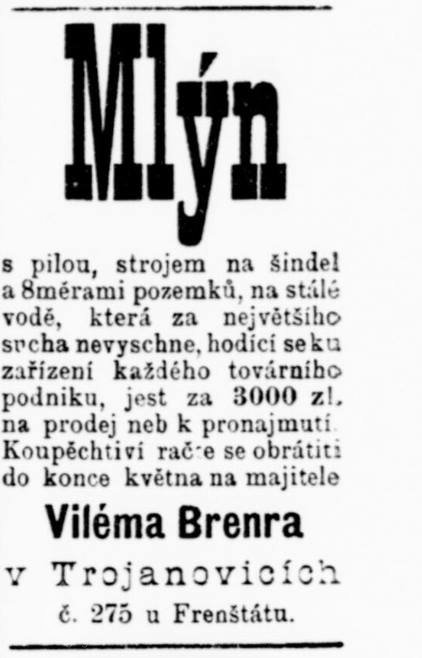 Vilém Brenra - prodej mlýnu a pily za 3000 zl. (pozn. MŠr. - toto patří k mlýnu a pile čp. 275!!!)