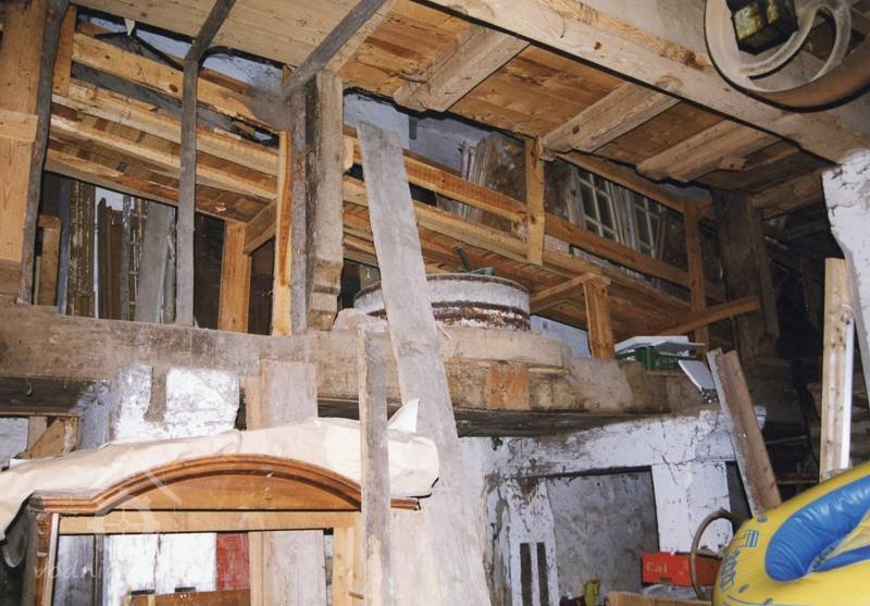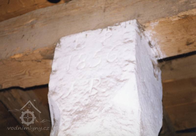Na západní straně mezi okny měděná tabulka "Josef Buchal 1856", letopočet 1856 i na jednom z podpůrných sloupů v mlýnici.
