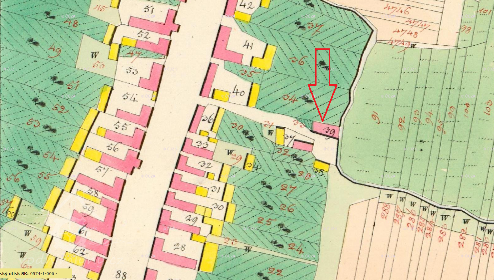 1760 Tereziánský katastr - Andreas Dundáček, mlýn s 1 složením a kašíkem (krupníkem), u mlýna 28 měřic polí