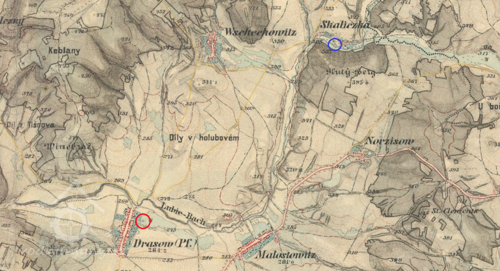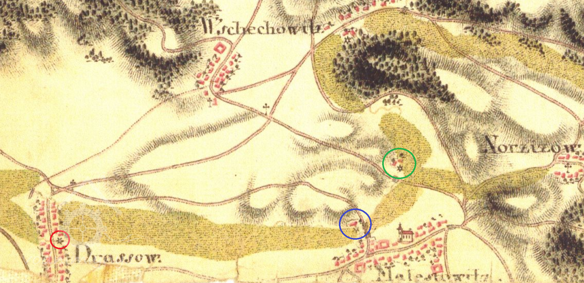 500 m severně od kostela Povýšení sv. Kříže v Drásově