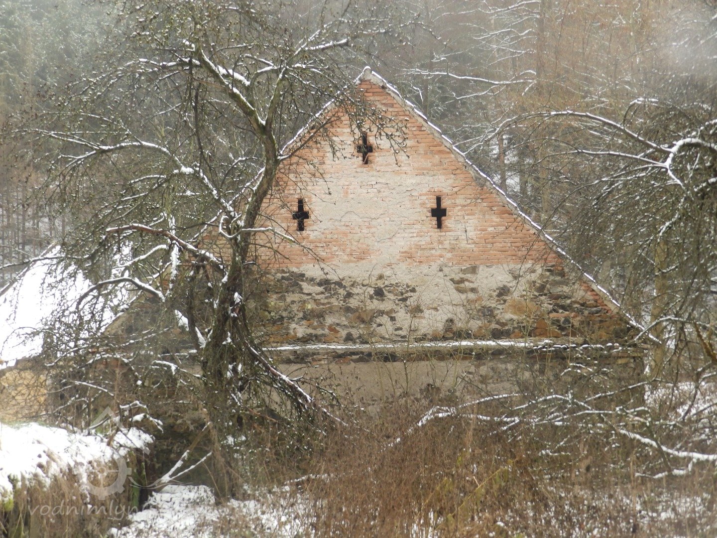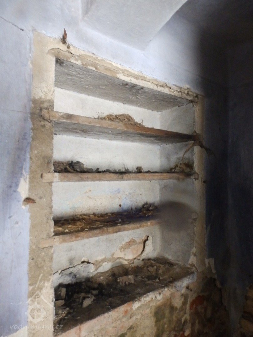 v mlýnici jsou dva zazděné prostupy a mezi nimi jeden otevřený