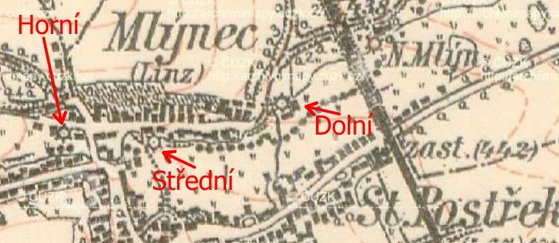 Horní polovinu přebírá v roce 1750 syn Jan Antonín, pak Jan Jiří 1780. Po jeho smrti přechází horní polovina na dceru Annu a jejího manžela Josefa Weidnera , mlynáře z Nového mlýna. Poté syn Ondřej a ten předává švagru Buršíkovi z Postřekova. Nezvládá ale chod mlýna a tak během první světové války provozoval obě poloviny Jiří Lang.