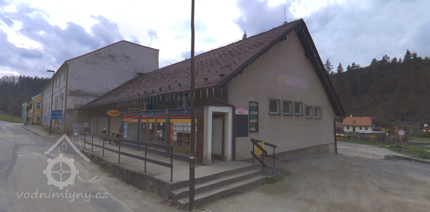 Zaniklý dolní mlýn v Rožmberku, na jeho místě dnes prodejna potravin.
