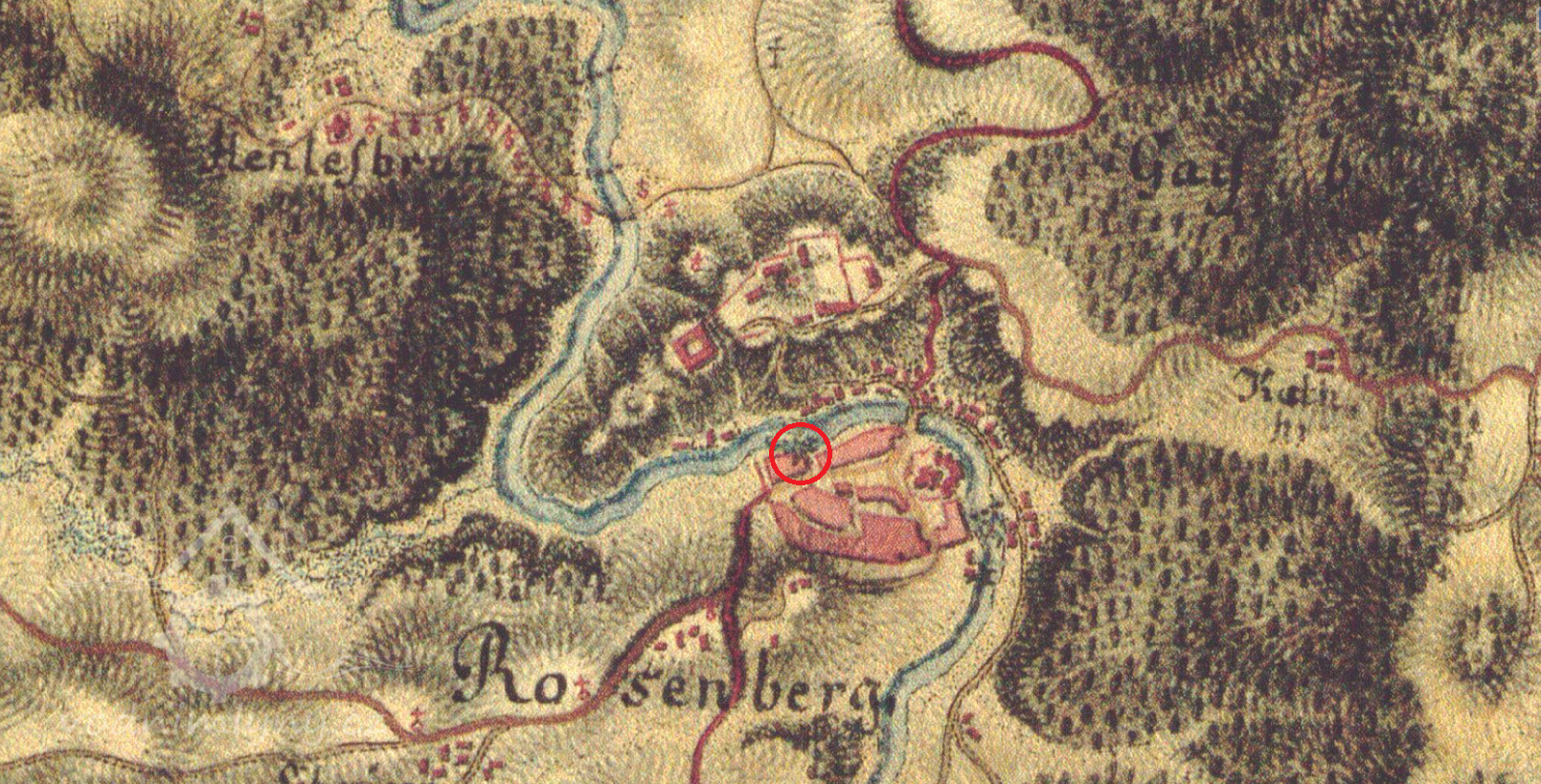 150 m jz od kostela sv. Mikuláše v Rožmberku