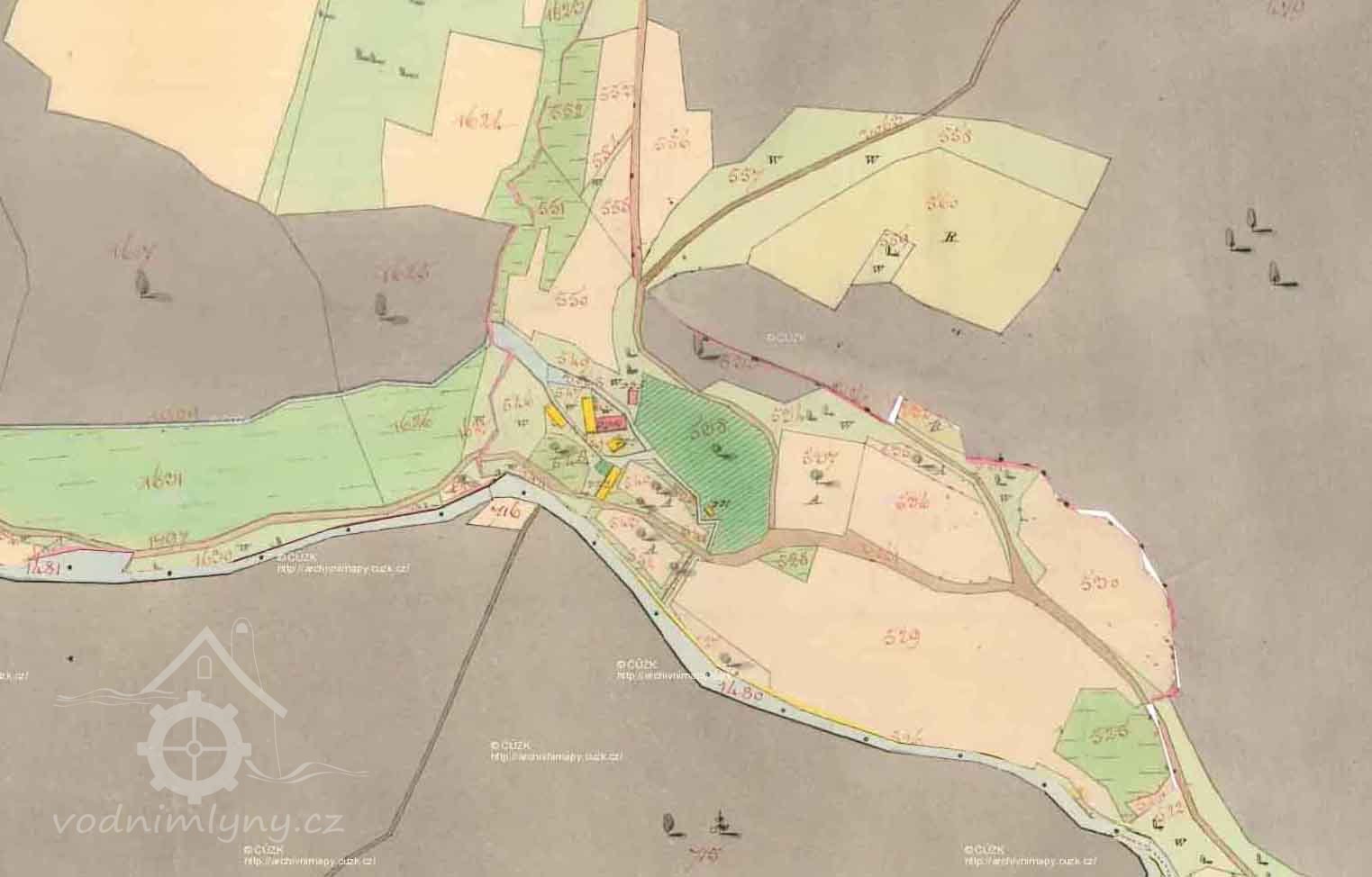 "Na emfyteutickém mlýně (dědičný pronájem) č. 57 měly vrchnostenské činže převahu nad daněmi a ostatními povinnostmi. Gruntovní daň činila 9. zl. 11 kr., domovní 40 kr., výdělková 2 zl., činže vrchnostenská 19 zl. 36 kr., dávky učiteli 1 zl. 12 kr., cena přípřeže 7 zl., dávky do obce 1 zl. 36 kr.31). Daně byly však přesto tíživější než robota, poněvadž se musely platit hotově a nedaly se jako robota oddělat.