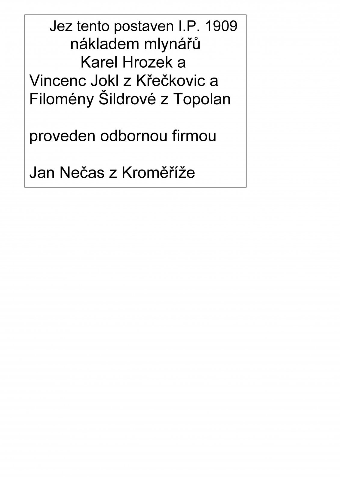 1909 mlynář Karel Hrozek ml. financoval obnovu jezu na řece Hané za vyškovskou sokolovnou