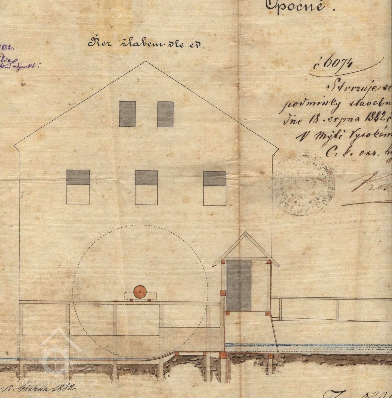 Zmíněné vodní motory a používané stroje potvrzuje i protokol z 15. října 1884 dochovaný ve sbírkovém fondu našeho muzea. Na rozdíl od běžně čtyřpodlažních mlýnů s uměleckým složením vznikl tento jako nevelký jednopatrový objekt. Jeho technologické vybavení poháněla dvě vodní kola na spodní vodu: „Pravým kolem žene se jedno obyčejné složení a levým špičák neb krupník neb jahelka…“