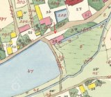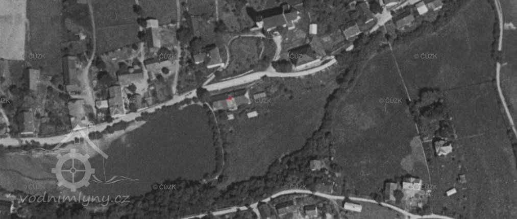 1838 – Skica, originální mapa a otisk stabilního katastru zaznamenávají podlouhlou nespalnou budovu pod hrází rybníka s jedním kolem v přístavku, odtokový kanál, majitelem je Josef Grahser.