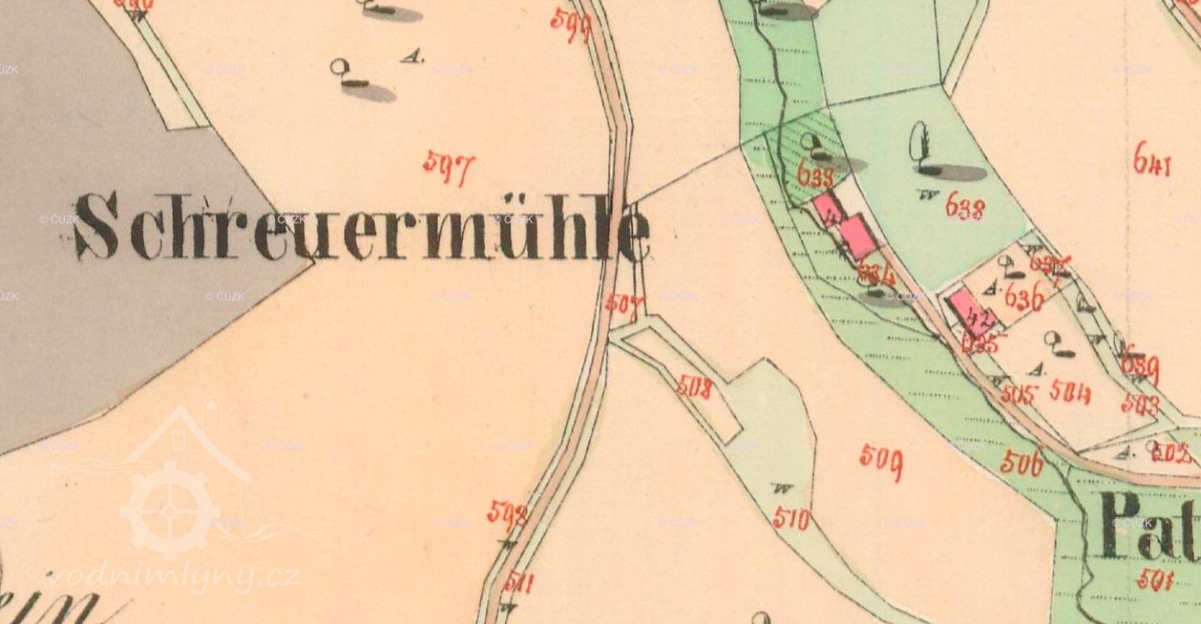 Částečně přestavěný mlýn na horním toku Tlučeňského potoka.