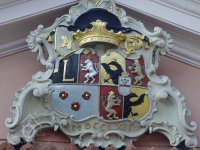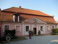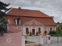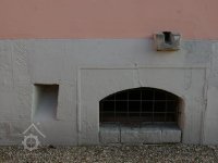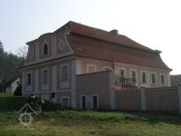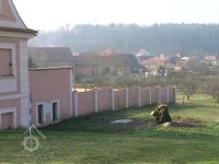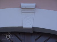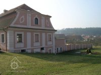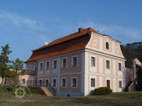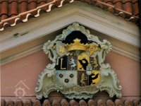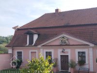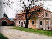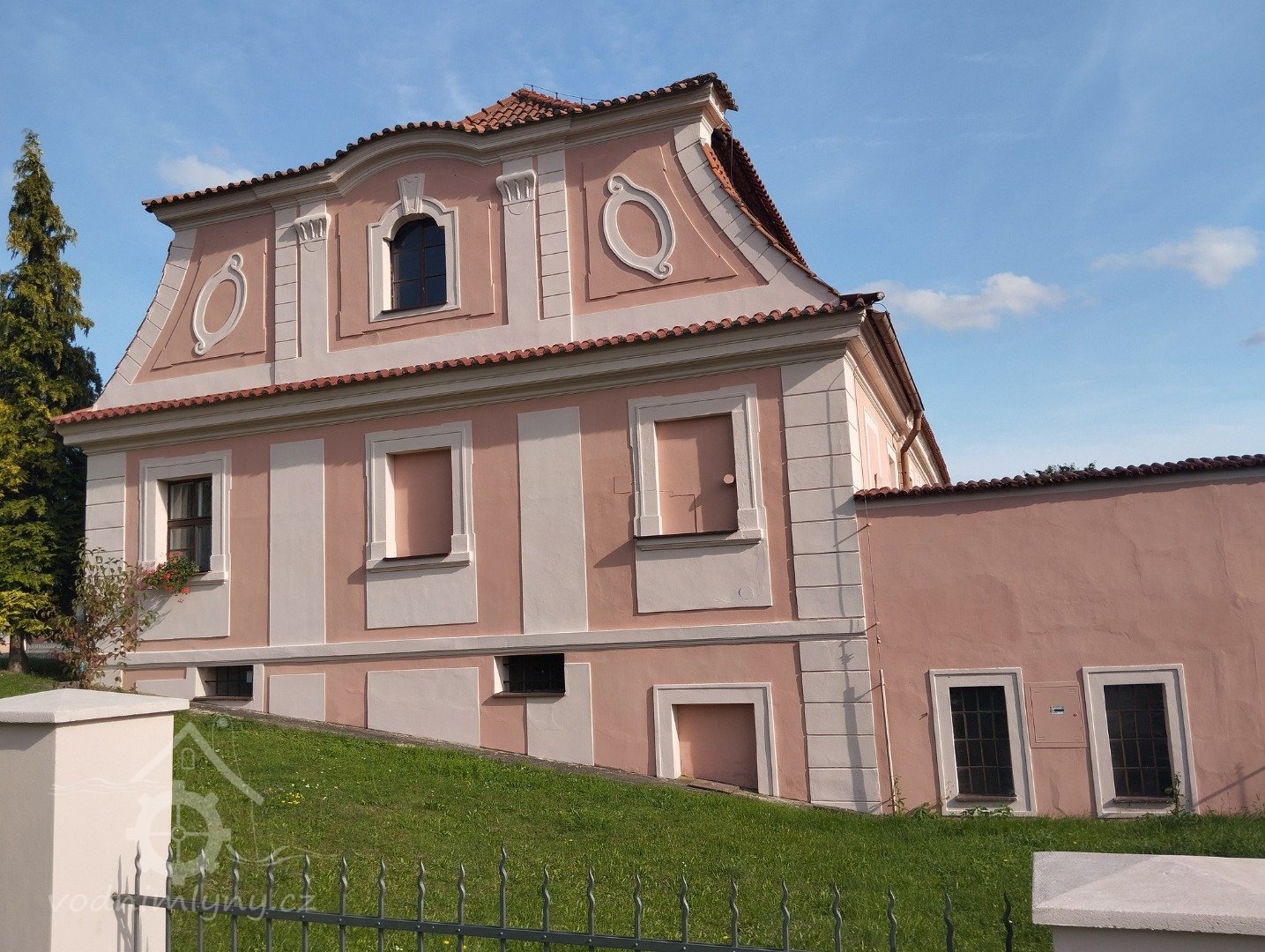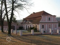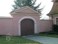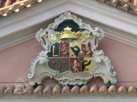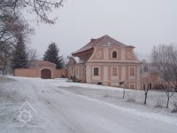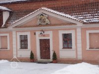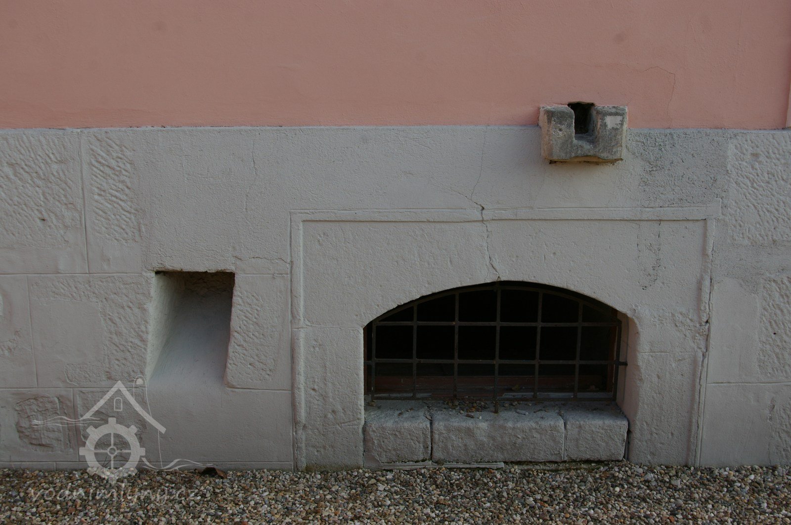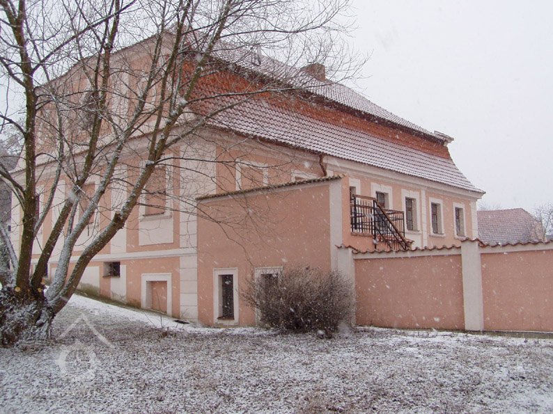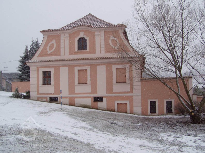 nad vchodem do obytné části je znak rytíře Winckelburga, posledního probošta (s titulem opata) kláštera premonstrátek v Doksanech s berlou a infulí v barokní kartuši s letopočtem 1762