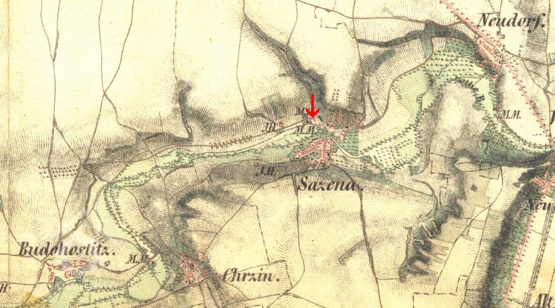 1. Zápis k roku 1726 informuje, že se v Sazené narodila dcera Anna jistému mlynáři Václavovi Tydlitátovi. Zdroj matrika Chržín, kniha narozených 1723-1739.