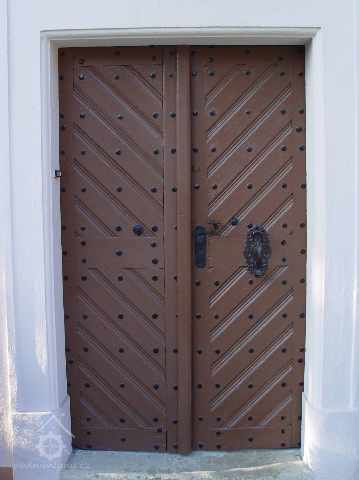 Hlavní vchod se dodnes nachází v ose severovýchodního podélného průčelí. Severovýchodní průčelí mlýna zvýrazňuje plochý rizalit, vrcholící v trojúhelníkovém tympanonu. Nad hlavním vchodem spatříme v tympanonu osazený kamenný erb doksanského opata Josefa Václava Winkelburgera, na němž se vedle iniciál opata uvádí i římskými čísly psaný rok výstavby mlýna – 1762. Nároží budovy zdobí bosáž.