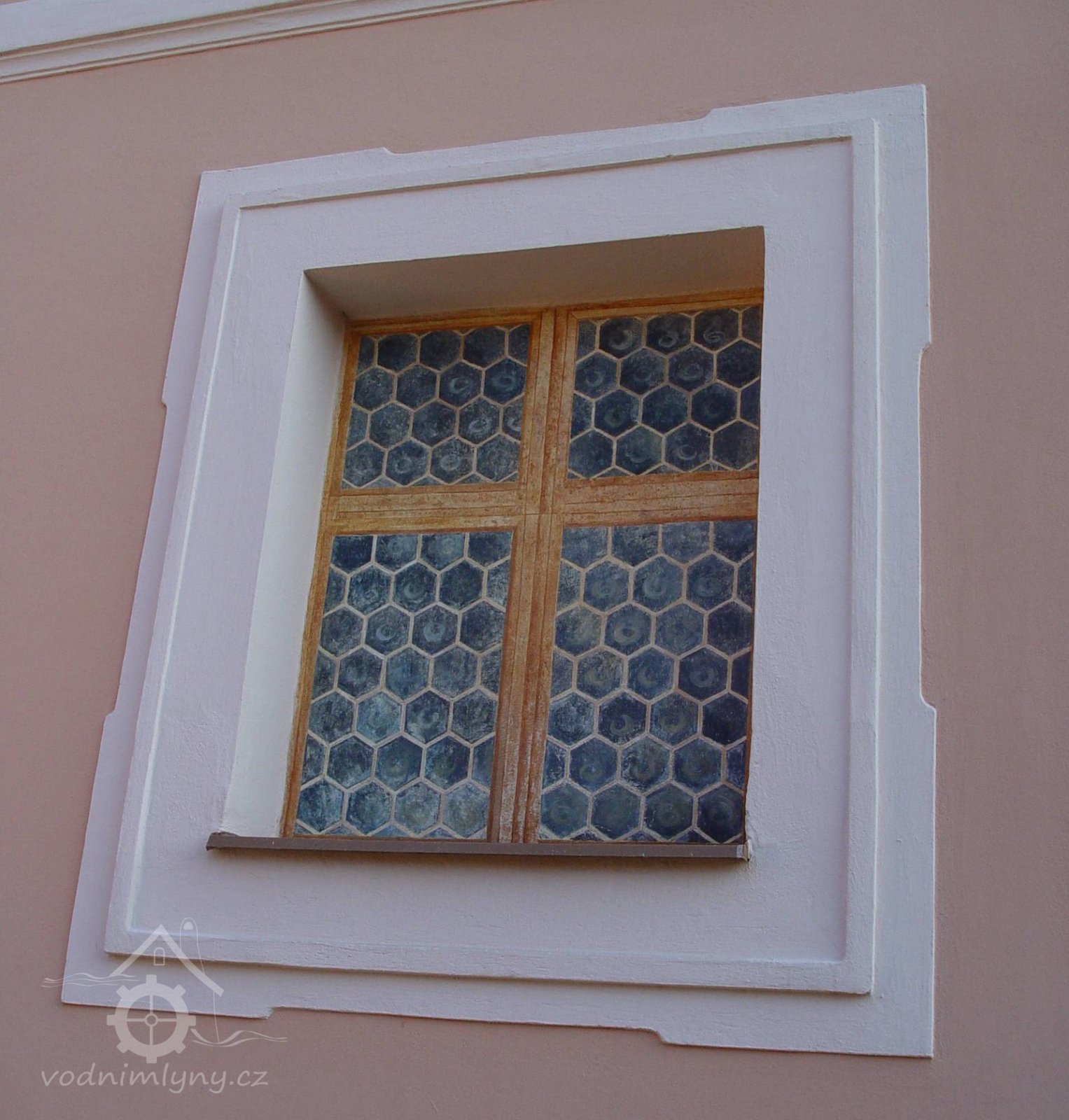 Jihozápadní průčelí částečně narušuje hmota turbínové kašny s typickým turbínovým domkem. Průčelí dělí bosované lizény a horizontálně dvě řady oken s jednoduchými lištami, okna ve středním rizalitu mají naznačené klenáky. Pod okny se v minulosti nacházela tzv. lednice, v níž bývala tři vodní kola. Jejich přesné umístění nelze dnes zjistit, jeden prostup jde snad rozpoznat v prostorách suterénu v podobě cihelného záklenku. Do prostoru lednice ústí z míst, kde podle současného majitele bývala kuchyň, kamenný žlábek, kterým se z kuchyně odváděla odpadní voda. Pravděpodobný pozůstatek vyšší kultury bydlení v honosném mlýně tvoří vyústění čtverhranné šachty, vedoucí v síle zdi z prvního patra. Mohlo jít o záchod. Velice hodnotný prvek tvoří iluzivně namalované okno v přízemí, objevené pod vrstvou novodobé omítky. Jeho iluzivní dřevěný rám vyplňují 4 tabulky tvořené skleněnými čočkami, rozdělené dřevěným křížem s křížením v horní třetině (latinský kříž). Toto okno nám udává představu o podobě ostatních oken v době barokní přestavby mlýna.