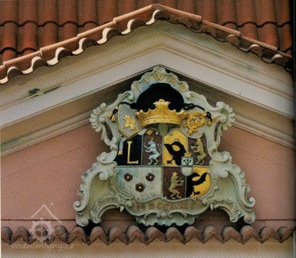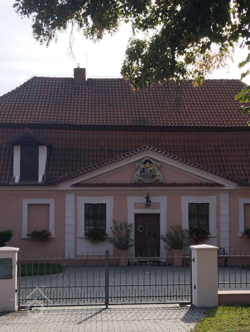 Nad vchodem do obytné části je znak rytíře Winckelburga, posledního probošta (s titulem opata) kláštera premonstrátek v Doksanech s berlou a infulí v barokní kartuši s letopočtem 1762