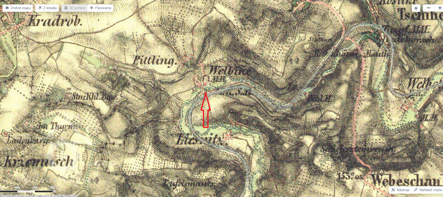 70 n jižně od kaple sv. Antonína ve Lbíně