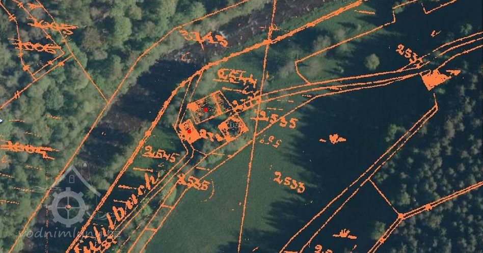 PopisV roce 1930 pohání elektrárnu kolo na svrchní vodu s průtokem 0.13 m3/s, spádem 2.6 m o výkonu 3 HP.