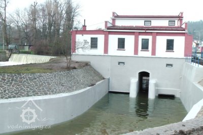 Popis1930: 2 turbíny Kaplan - Storek, hltnost 2 x 4,7 m3/s, spád obou 2,6 m, celk. výkon 260 HP