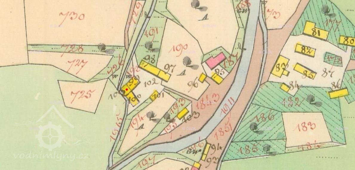 Popis1930: 1 kolo na svrchní vodu, hltnost 0,08 m3/s, spád 4 m, výkon 2,7 HP