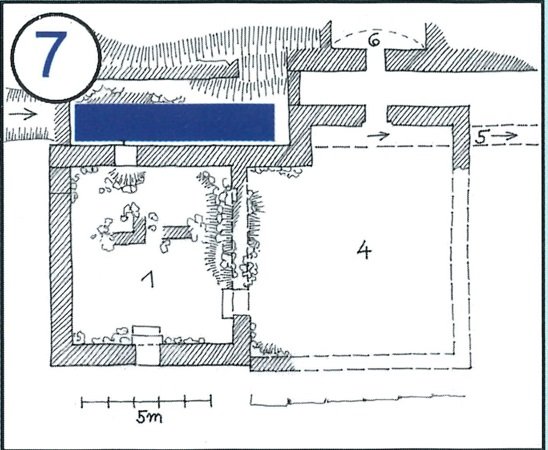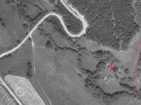 Na leteckém snímku z roku 1957 jsou viditelné již jen obvodové zdi.